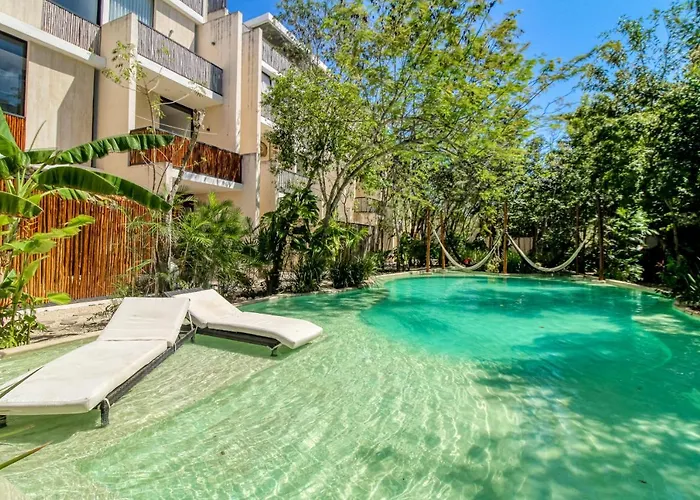 Si estás buscando alojamiento en el barrio La Veleta de Tulum, el Palalma Casa Tulum #32, Modern Tropics, La Veleta Apartamento es una excelente opción, ubicado a 3 km del Cenote Calavera. Este apartamento de 130 m^2 está equipado con piscina exterior, que crean un ambiente más agradable para los huéspedes.